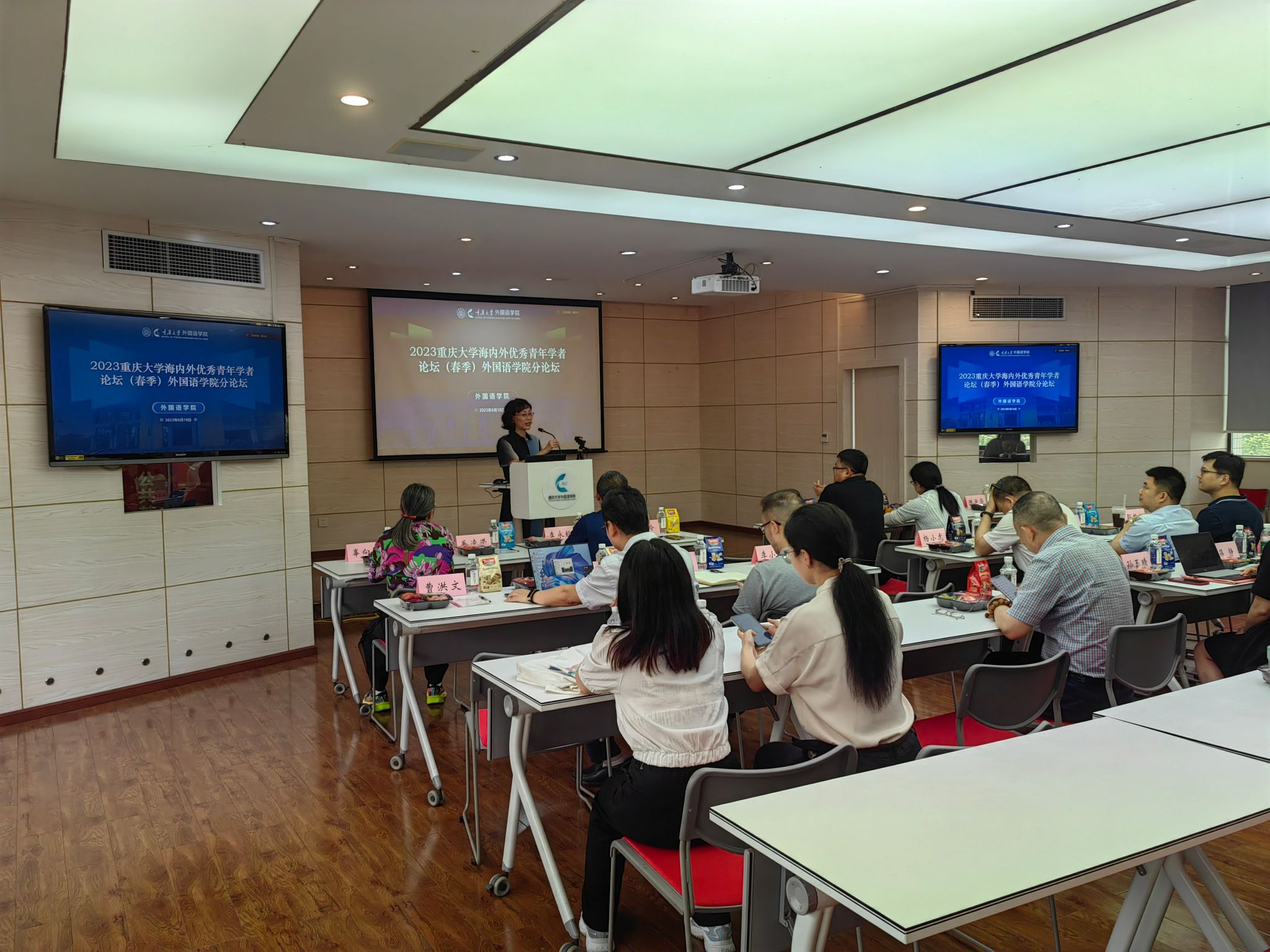 海内外优秀青年学者论坛(春季)外国语学分论坛顺利落幕。本次论坛为增进国际交流与合作,促进学科间交叉创新和共同发展提供了拓展学术视野、增进学术交流的良好契机,为学院师生与国内外优秀青年学者进行学术交流提供了良好平台,有利于建设一支高水平师资队伍,为学校的“双一流”建设奠定更加坚实的人才基础。