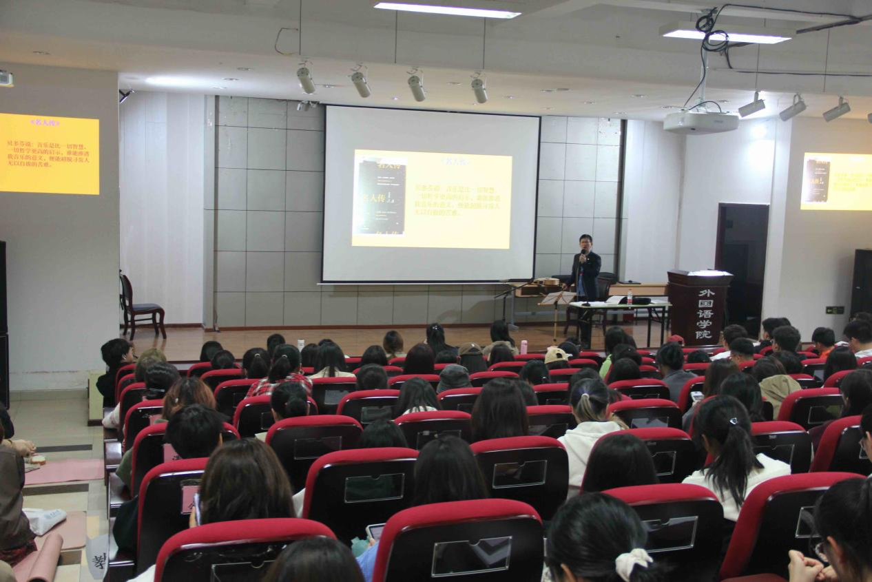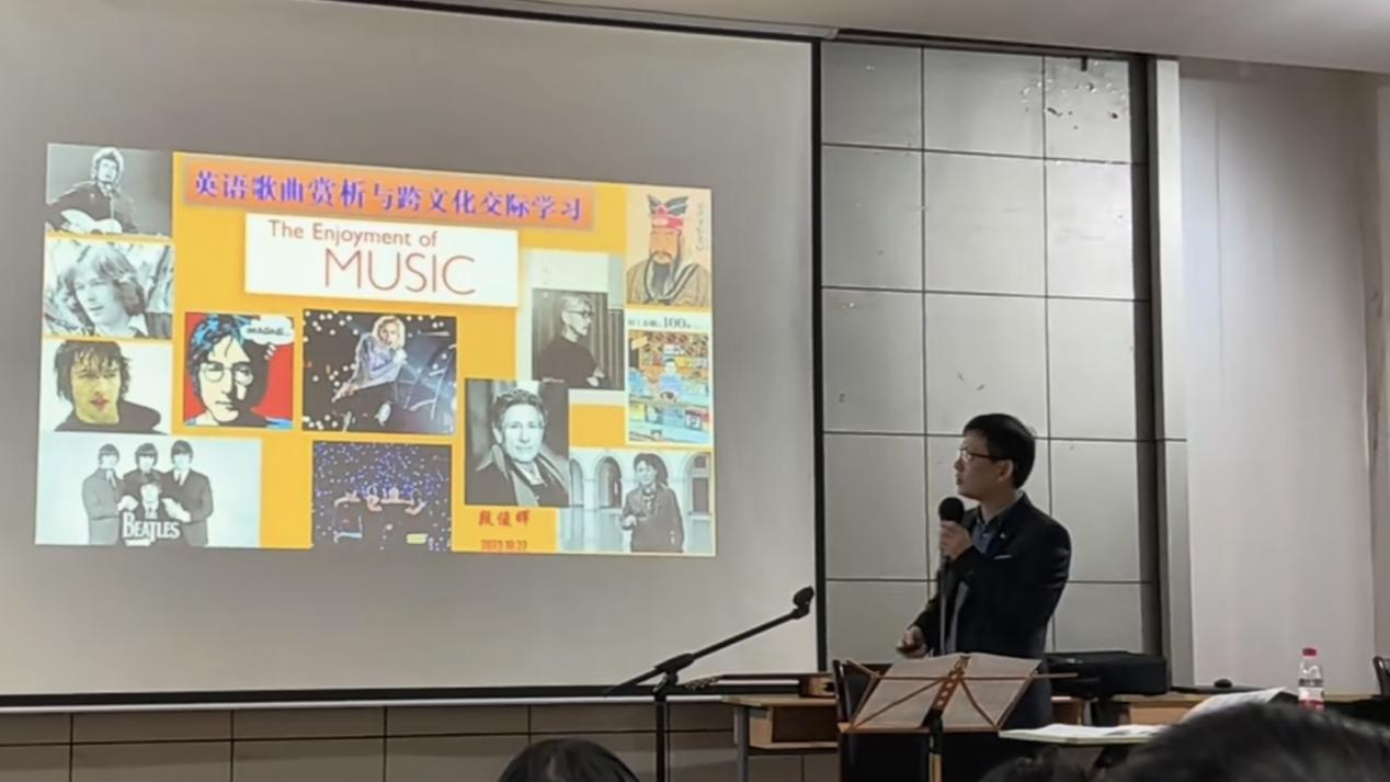 2023年10月22日晚,四川外国语大学段俊晖教授来校做了“英语歌曲赏析与跨文化交际学习”的主题讲座。讲座由磁力猫