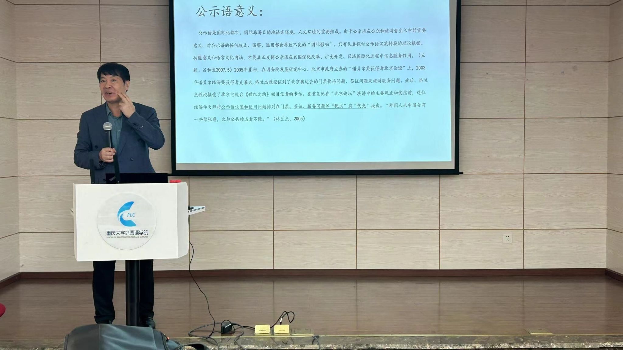 谢旭升教授首先指出,公示语是国际化都市和旅游目的地语言环境的重要组成部分。它不仅提供必要的信息和指令,而且展现了一个城市的国际化语言景观和文化软实力。在这样的背景下,公示语的翻译变得尤为关键,它是一种寻找最大关联性、追求理想化文化模式的跨文化交际行为。