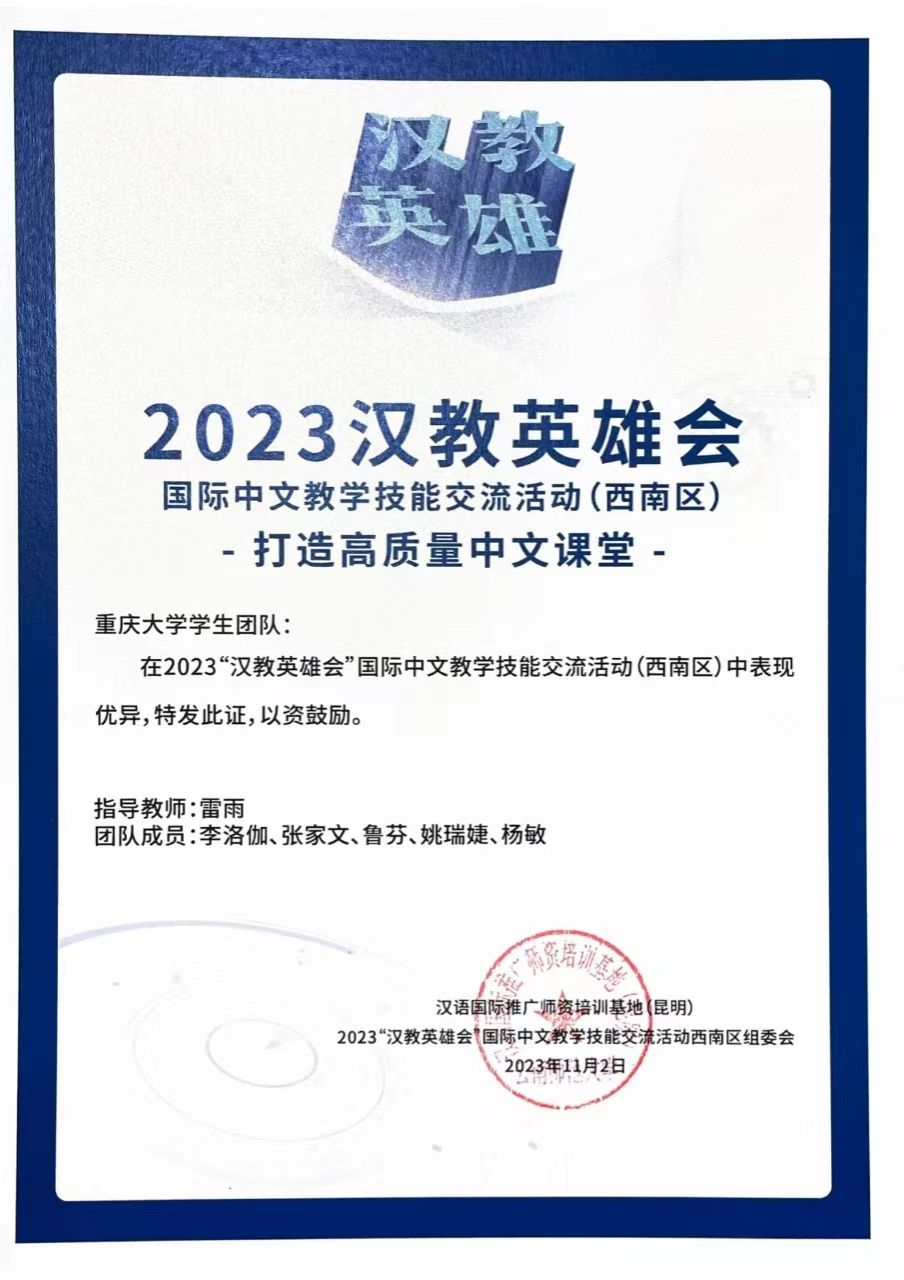 2023年6月至12月,由全国国际中文教育专业学位研究生教育指导委员会、教育部中外语言交流合作中心联合举办了2023“汉教英雄会”国际中文教学技能交流活动。我院由指导老师雷雨和汉硕5名中外学生组成的磁力猫