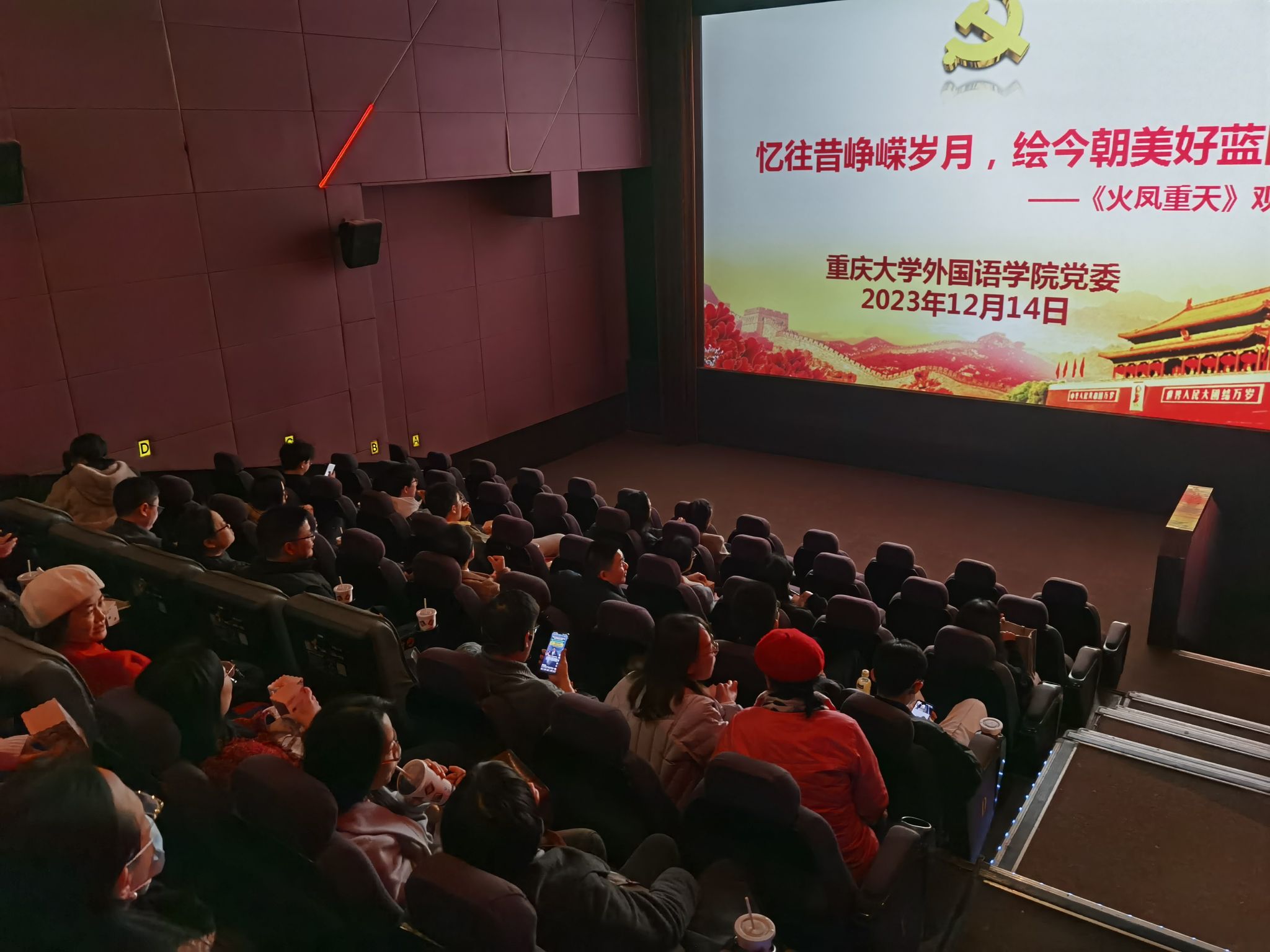 外语专业教工支部联合其他教工支部党员,前往UME影院沙坪坝店观看了电影《火凤重天》。这部动画电影根据周勇的著作《<苦干>与战时重庆》改编,通过艺术手段对历史真实事件进行了再创作,给观众讲述了一段抗战历史。