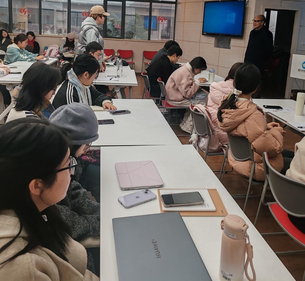 副院长符存教授主持,学院各年级部分本科生、研究生参与聆听。