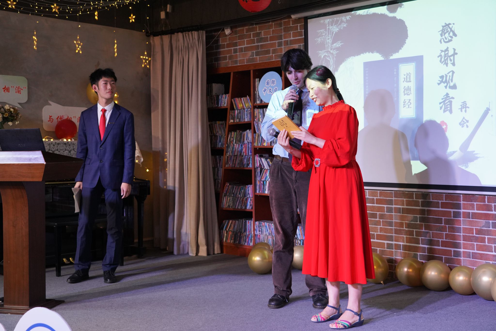 副院长郑尧、图书馆副馆长陈文为节目展演和优秀阅读分享同学颁发了荣誉证书。参与活动的嘉宾、展演同学、分享同学和现场师生在讲台上大合影,定格下这一跨文化交流的美好瞬间。