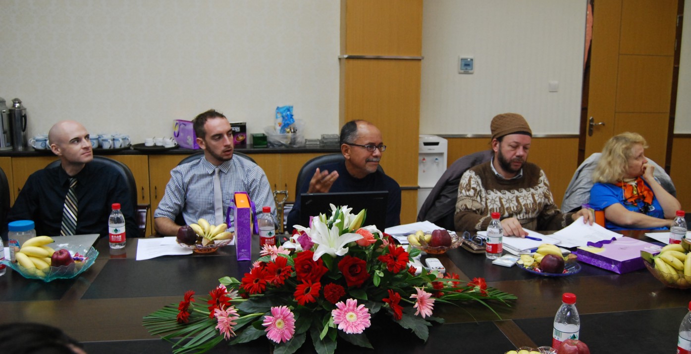 党委书记余渭深、院长李红、副院长欧玲、董平荣,学院大学英语、教务、外事等方面的管理人员以及已经到岗的全体20名外教参加了本次欢迎会。
