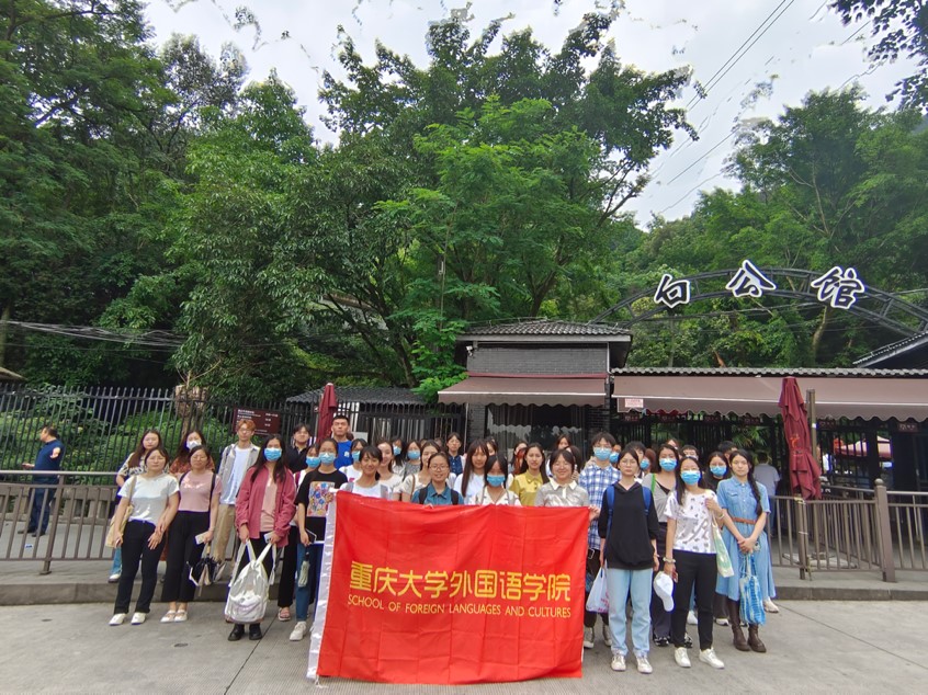 参观结束后,学员们在白公馆大门处合影留念,大家一起交流了心得感想。学员们颇有感触:“白公馆的先烈们面对死亡毫不畏惧,对革命怀着必胜的坚定信念。先烈们是最好的代表,他们是民族的精英,民族的脊梁。作为新时代的外语专业学生,我们在夯实语言专业技能的同时,更要开阔眼界,立足于中华民族优秀传统文化,向世界展示新时代中国形象,将红岩精神传承下去,做有理想、有担当的新时代青年。”