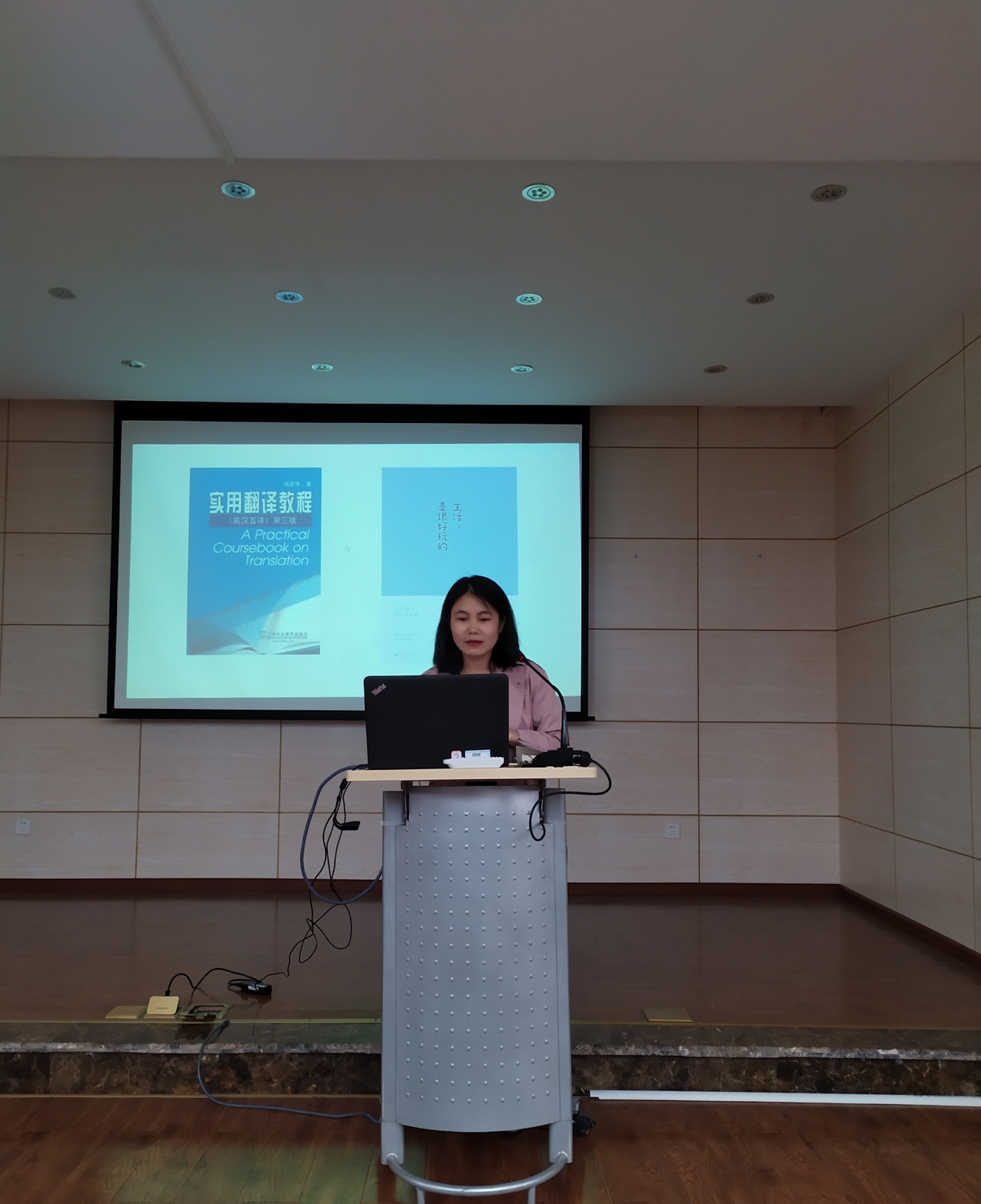 第三期读书沙龙以“翻译与生活”为主题。首先,左艳红同学介绍了冯庆华教授的《实用翻译教程》,并从推荐理由、作者介绍、主要内容、学习方法方面进行详细介绍。该书较为全面的介绍了词语翻译和句子翻译的各种方法,对翻译硕士的学习十分有益。紧接着,她分享了汪曾祺先生的《生活,是很好玩的》。书中的美食、草木、人物介绍生动诠释了汪曾祺先生的生活哲学“生活,是很好玩的”。希望通过此书,同学们能够发现更多生活之美。