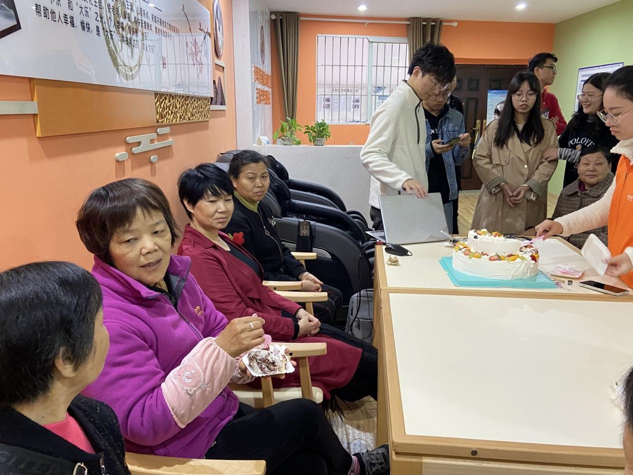 本次实践学习活动共分为两个部分,为社区老人集体过生日以及和老人一起包抄手。社区养老服务站的志愿者以及社区老人对大家的到来表示热烈的欢迎。8名党员发展对象和社区志愿者为社区老人集体过生日,送上了生日蛋糕和生日祝福,并合唱生日歌,老人们脸上洋溢着灿烂的笑容。