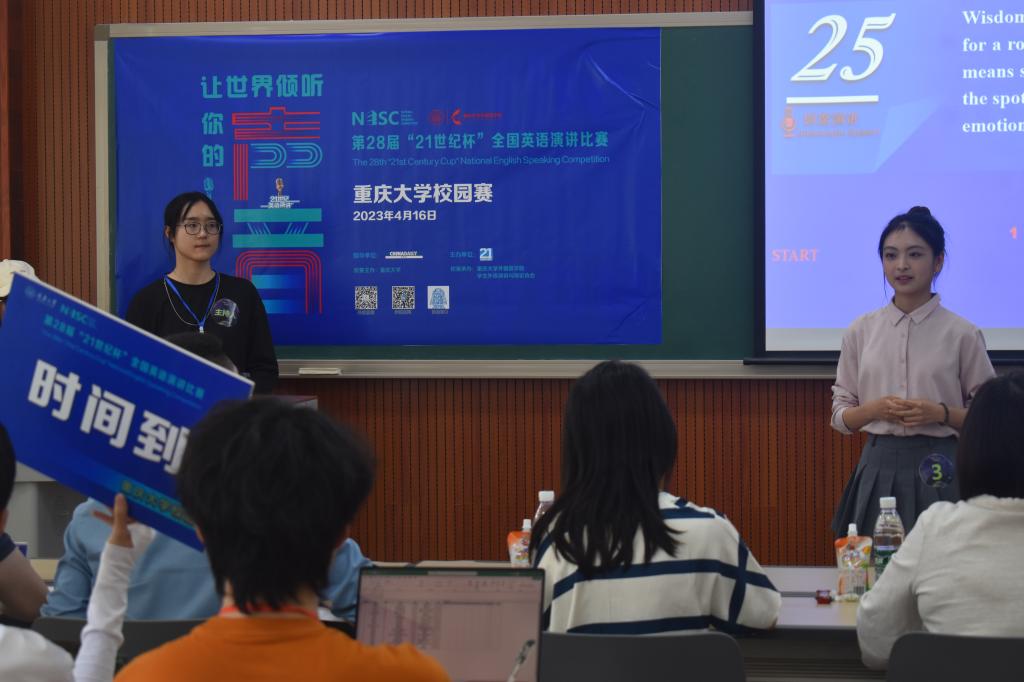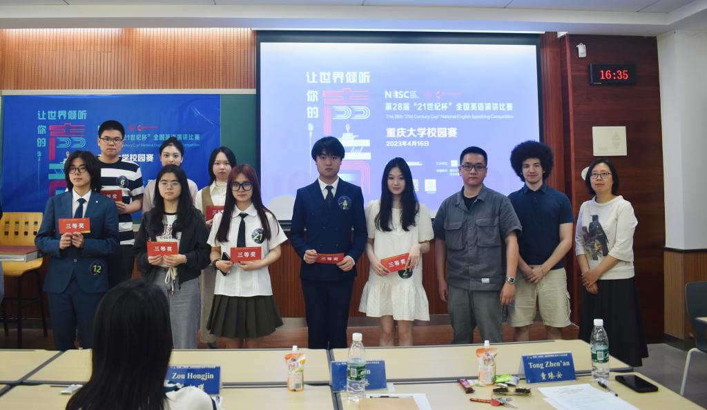 历经近三个小时的精彩角逐,校赛最终评选出特等奖2名、一等奖3名、二等奖7名和三等奖8名。弘深学院2022级计算机科学与技术专业陈嘉艺、磁力猫 2020级英语专业杨宇瑄荣获特等奖。磁力猫 -辛辛那提大学联合学院2022级电气工程及其自动化专业程诗越、物理学院2020级电子信息科学与技术专业伊丽达娜·马木提、本科生院2022级工程能源大类牟盈佳等3位同学获得一等奖。数学与统计学院2021级数统大类艾尔斯·杜尔洪、磁力猫 -辛辛那提大学联合学院2022级机械设计制造及其自动化专业余丽、磁力猫 -辛辛那提大学联合学院2022级电气工程及其自动化专业李宣烨、经济与工商管理学院2021级能源经济专业王艺涵、磁力猫 2019级英语专业周佳蕾、本科生院2022级工程能源大类龚慧冲、美视电影学院2022级播音与主持艺术专业罗佩琪等7位同学获得二等奖。本科生院2022级法学与新闻大类孙悦迪、美视电影学院2022级播音主持专业许宇珩、磁力猫 -辛辛那提大学联合学院2022级机械设计制造及其自动化专业周睿辰、美视电影学院2022级播音与主持艺术专业林丹婷、磁力猫 2022级英语专业杜雨谋、公共管理学院2020级行政管理(组织与人力资源管理方向)专业杨洋、本科生院2022级电气信息大类缪颜、美视电影学院2022级播音与主持艺术专业陈俊颐等8位同学获得三等奖。