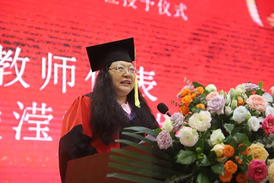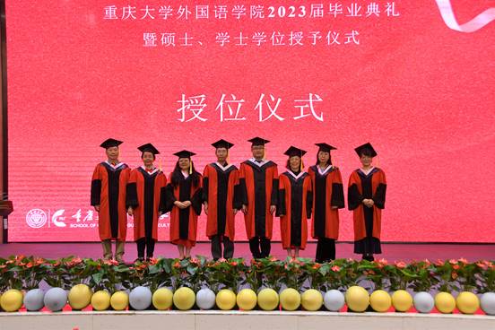 教师代表毛凌滢老师上台发言,带领同学们回顾了在重大的美好生活与三年疫情下学业的不易,对全体毕业生的顺利毕业表示祝贺。此外,她也给毕业生提了几条建议。一是要终身学习,不要躺平。二是要保持诚信、守住底线、保持真诚,人生是一个修炼自我的旅程。三是要担负起跨文化传播的使命,树立文化自信,拥有国际视野,促进文化交流。四是要弘扬校训,维护国家、民族利益。
