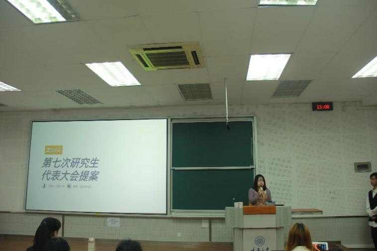 最后,在主持人的组织下,广大研究生进行了自由提案。与会者积极发表自己的看法和意见,提出了关于宿舍条件、校车安排等等方面的问题和建议。