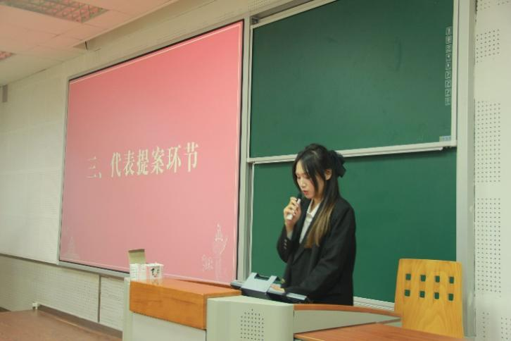 的研究生学生代表胡稀雨、文箐一帆、张馨月纷纷提出了自己的提案。他们从学术研究、科研支持、住宿出行等多个方面提出了与博士论文发表、校园电动车充电等问题并提供了具体解决方案和参考案例。代表们的提案反映了研究生群体的关注点和热点,为学院未来的发展提供了宝贵的参考。