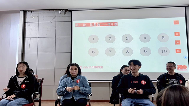 第二轮风险赛题型分为单选题、多选题和填空题,10位选手斗志昂扬、思维敏捷,沉着地应对各种类型的题目,现场气氛十分热烈。同学们运用平日里积累的党史知识,赢得现场同学们的阵阵掌声。