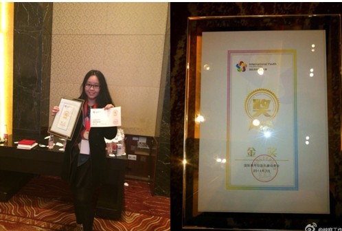 的王小溪带领的梓庭恋爱创意最终获得了第二届国际青年创新大赛的创意营销金奖。