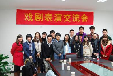 2013年12月10日,我院由毛凌滢、盛荔、张宏、陈亭四位老师带领的戏剧社全体成员与台湾东吴大学《亨利五世》剧组的三名同学在学院419会议厅召开戏剧交流会议。在此次会议中,台湾东吴大学的三名同学根据自己曾在“中国大学莎士比亚戏剧大赛”获得冠军的经验与技巧对本院戏剧社同学做出指导并和我院戏剧社同学深入交流。而此次会议的召开对我院戏剧社的发展起到了至关重要的作用。