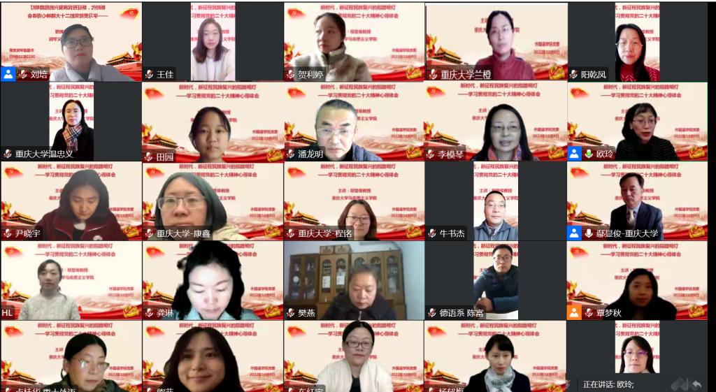 马克思主义学院鄢显俊教授以《新时代,新征程民族复兴的指路明灯——学习贯彻党的二十大精神心得体会》为题,开展了党的二十大精神宣讲。宣讲会由学院党委书记欧玲主持,学院370余名师生在线参与了学习。