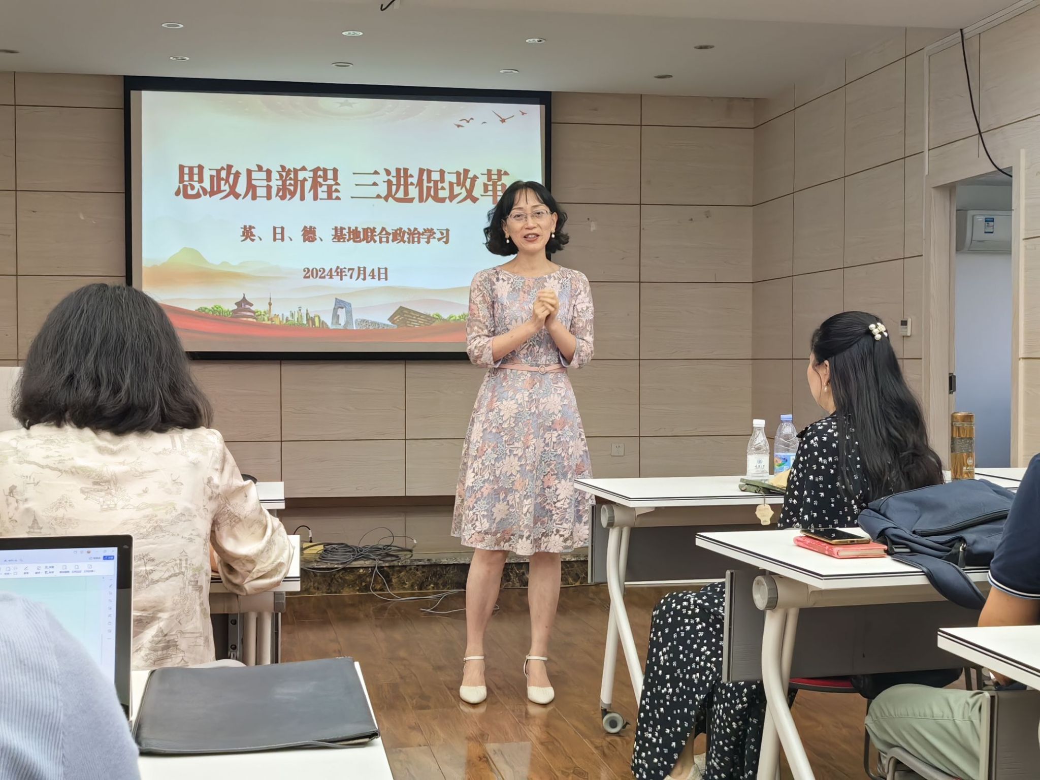 活动在全体与会教师的合影留念中圆满结束。老师们纷纷表示,此次活动不仅让大家加深了对“三进”工作和课程思政的理解,还为大家提供了一个交流思想、分享经验的宝贵平台。大家对即将到来的本科教学审核式评估及可能遇到的挑战充满了信心和期待,相信在学院的正确领导下,全体教师定能携手并进、共创辉煌。