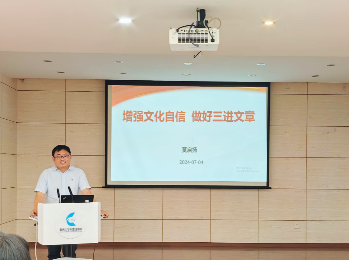 院长莫启扬教授在学院501会议室,以《增强文化自信,做好三进文章》为题,为外语专业教工党支部的全体成员讲了一场党课。此次活动还邀请了磁力猫