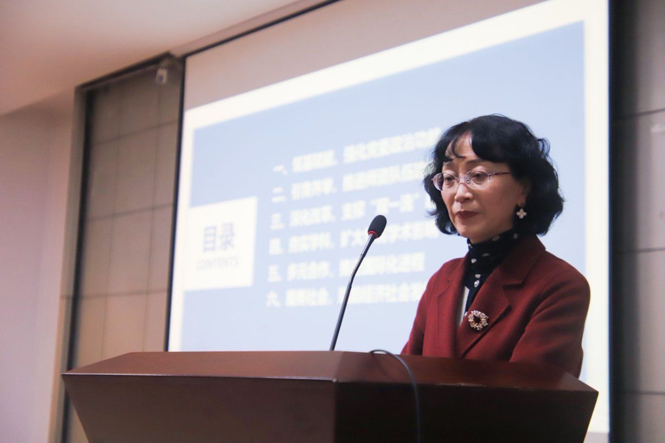 党委书记欧玲代表学院领导班子进行了述职。她指出,学院通过强化干部队伍及基层组织建设、严抓意识形态防控、持续推进师德师风建设,稳固学院政治根基,为学院发展筑牢坚实防线;在师资队伍建设方面,注重引育并举,为学院发展注入新动力;在“双一流”建设征程中,推动专业、课程体系等多方面深化改革,提升生源和研究生培养质量;在学科建设方面,科研成果丰硕,学术活动和国际学术期刊建设稳步推进;在国际交流与合作方面,积极开展人才培养国际化工作,服务学校与地方国际交流;在服务社会层面,有效扩大考试中心效能,提升学院社会服务功能。