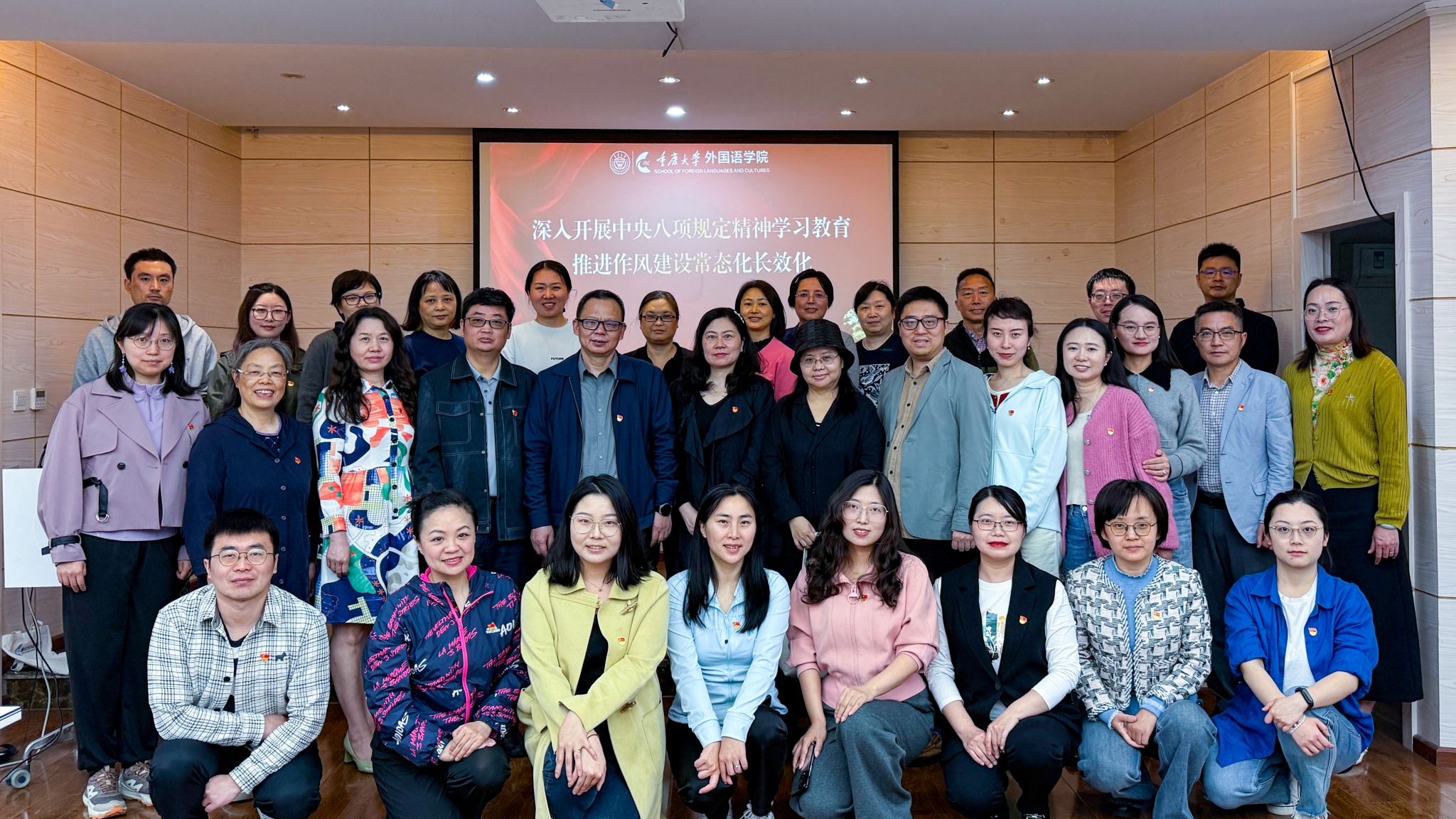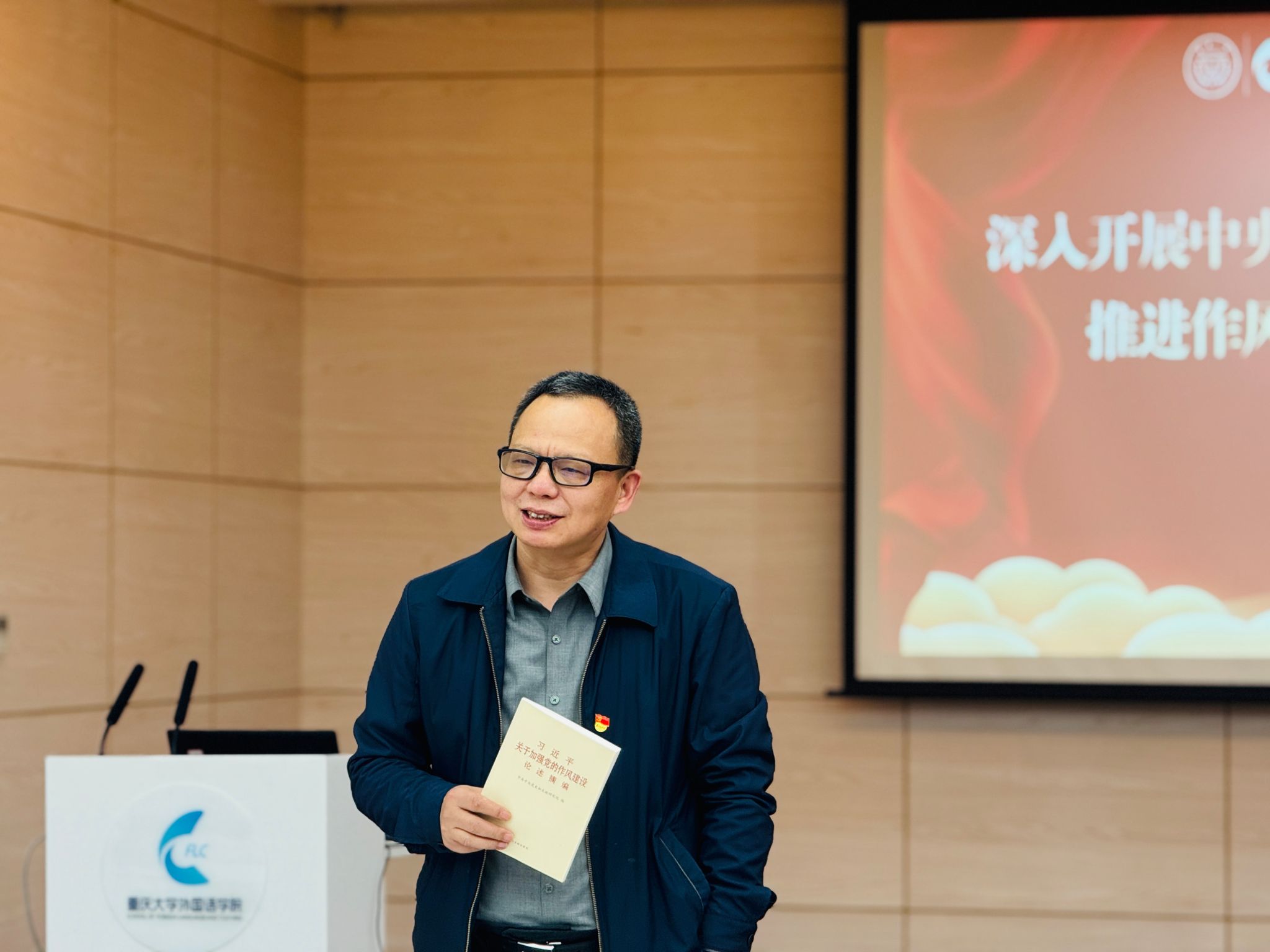 外语专业教工支部和行政教工支部联合开展深入贯彻中央八项规定精神学习教育专题学习,学院副院长杨小虎以《深入开展中央八项规定精神学习教育,推进作风建设常态化长效化》为主题,为支部全体党员讲授专题党课。