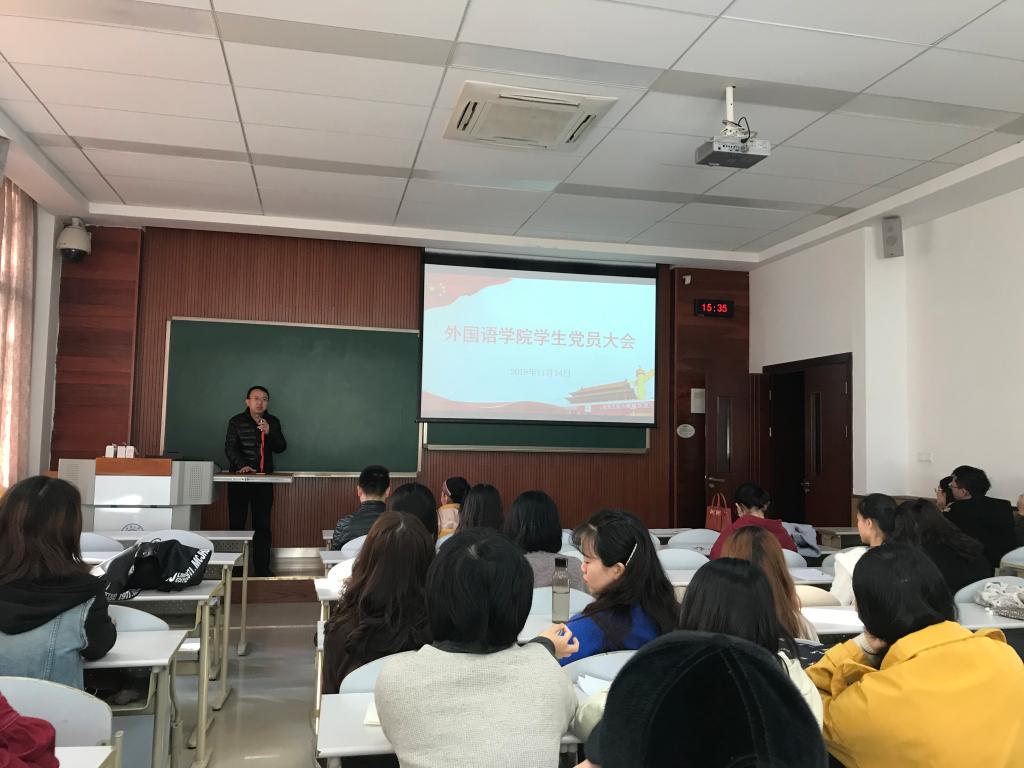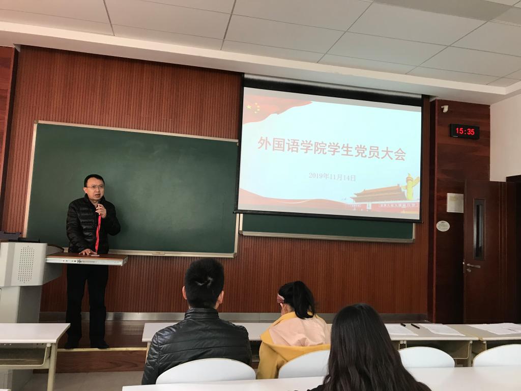 党委在一教144教室召开了全院学生党员大会。学院党委副书记、纪委书记魏世平,院长助理、汉语国际教育硕士研究生支部书记杜瑾老师,学办主任、学术研究生二支部书记朱洪召老师,团委书记、本科生党支部书记张茹老师,及学院全体学生党员参加了此次会议,大会由学院党委组织员刘培老师主持。