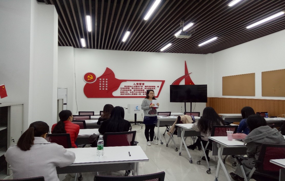 翻译硕士党支部严格按照党组织“坚持标准、保证质量、改善结构、慎重发展”的方针,积极稳妥地进行预备党员发展工作。首先,支部副书记尤思婕同志向全体参会党员介绍了会议流程,随后戴佳欣同志作了自我陈述,向支部汇报了自己的学习生活情况、入党动机以及今后的发展目标,表明了入党的坚定信念及发展成为预备党员的意愿,经推荐人发表意见及参会正式党员的民主投票,支部通过了戴佳欣同志发展为预备党员的申请。