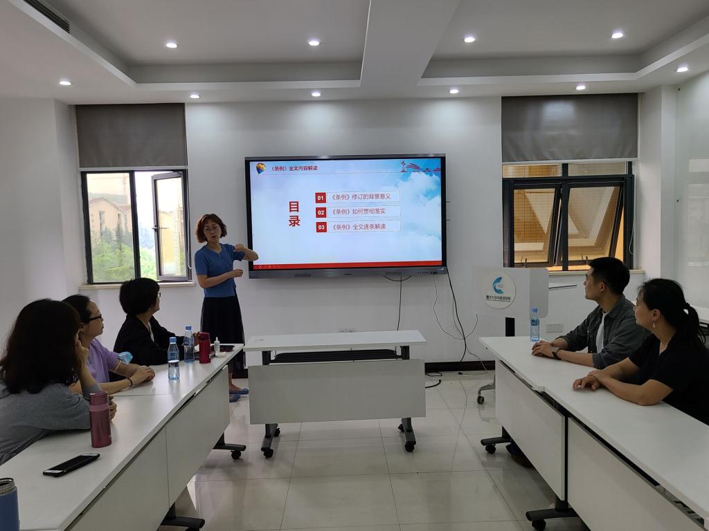欧玲书记主讲,带领各位党员学习解读中共中央印发的《中国共产党普通高等学校基层组织工作条例》(以下称《条例》)。