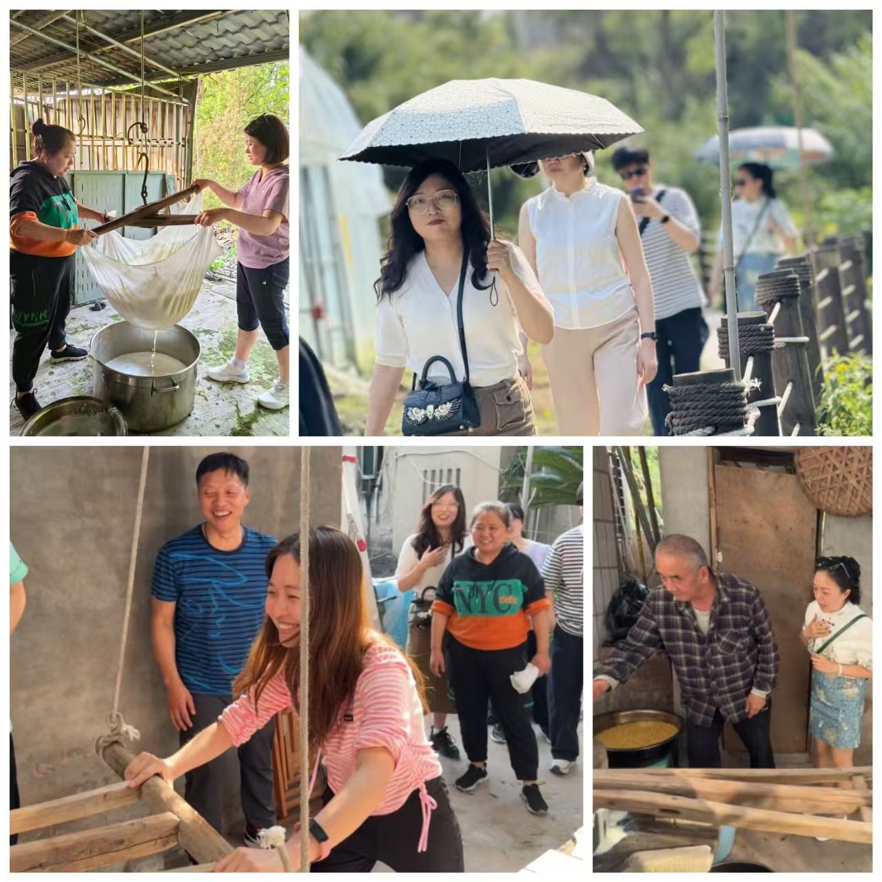 在传统豆花制作体验环节,老师们化身“手艺人”,从磨豆、过滤到煮浆、点卤,全程参与豆花诞生过程。乳白的豆花在指尖成型,大家不仅品尝到乡村美食的醇香,更体会到传统技艺背后的匠心与智慧。