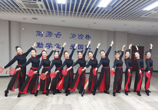 校工会教职工舞蹈协会的老师们倾注了比平时更多的热爱与坚持。与往年几个月的准备时间相比,今年由于疫情防控要求,舞协一直到9月份才恢复训练,为了能够再次为观众呈现高品质的舞蹈作品,吴娟老师坚持脚踝扭伤依然带病组织大家每周按时训练,老师们克服工学矛盾和家庭事务等重重困难,在忙碌的工作之余,利用三个月的时间将中国古典舞和爵士风格融入舞蹈,排练出了这支成品舞。