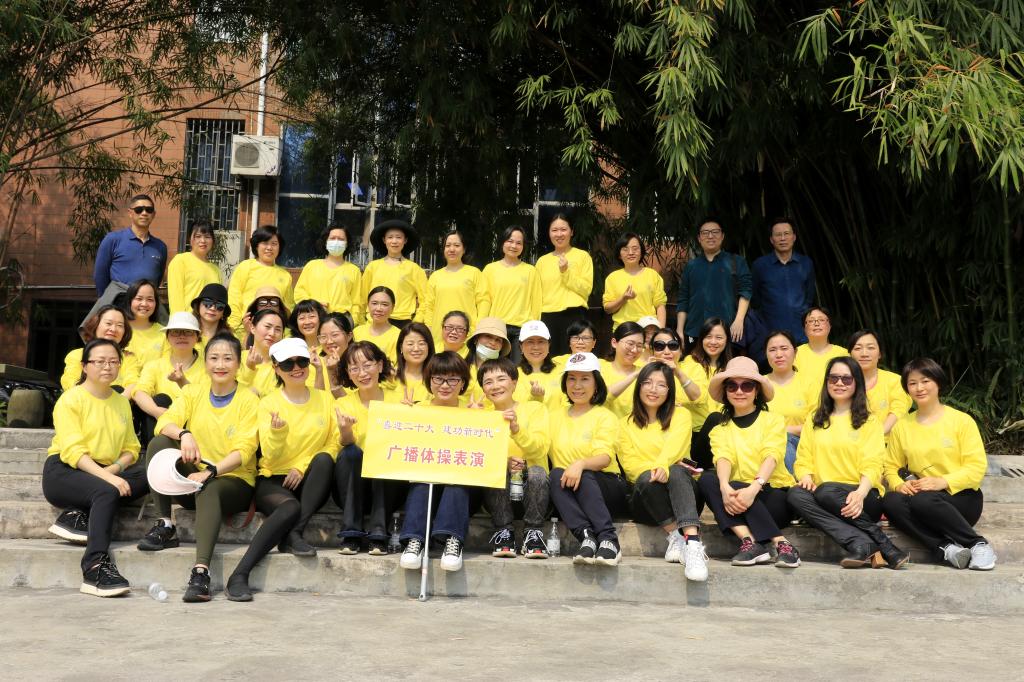 广播体操表演以分工会为单位,分为四个方阵参加。中午13:20,沐浴着温暖的阳光,参加广播体操比赛的老师们提前来到思群广场领取统一服装,站队训练。14:00,随着“全国第九套广播体操”的音乐响起,老师们昂首挺胸,开始表演。运动场上大家精神饱满,动作整齐,张弛有度,充盈着刚健之美,充分展示了磁力猫