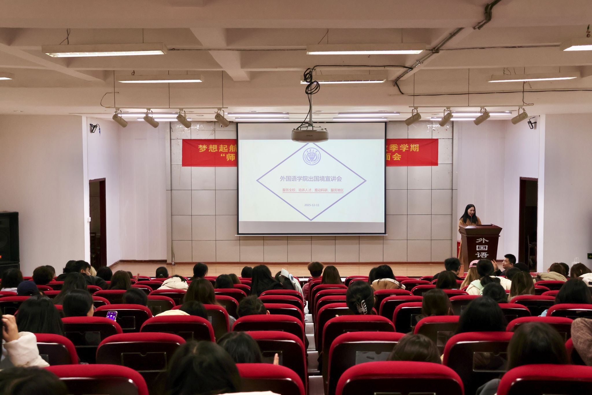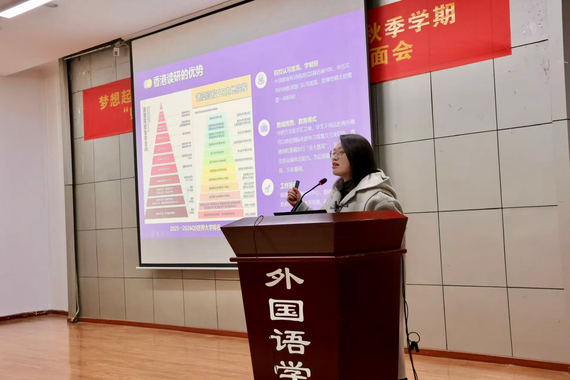 在学院多功能厅成功举办出国(境)项目宣讲会。本次宣讲会旨在为有志于赴海外交流、深造的学生提供系统的项目介绍与专业指导,帮助学生拓展国际视野、规划升学与职业发展路径。宣讲会由赖雨琪老师主持,学院副院长符存、香港大学教育见习访学项目负责人艾佳华等近百名师生参与宣讲会。