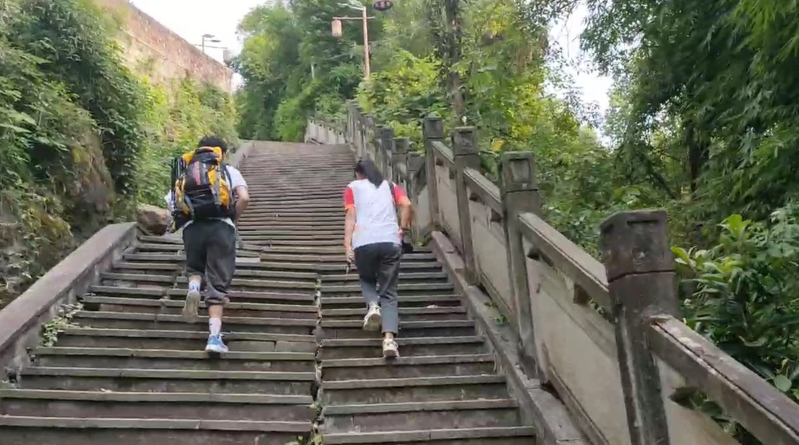 “回望发展成就,展望重庆未来”实践团成员沿着天子山步道向上攀爬,沿途观察当地的变化与发展,在山顶俯瞰城区,直观体验县城的发展与成就。