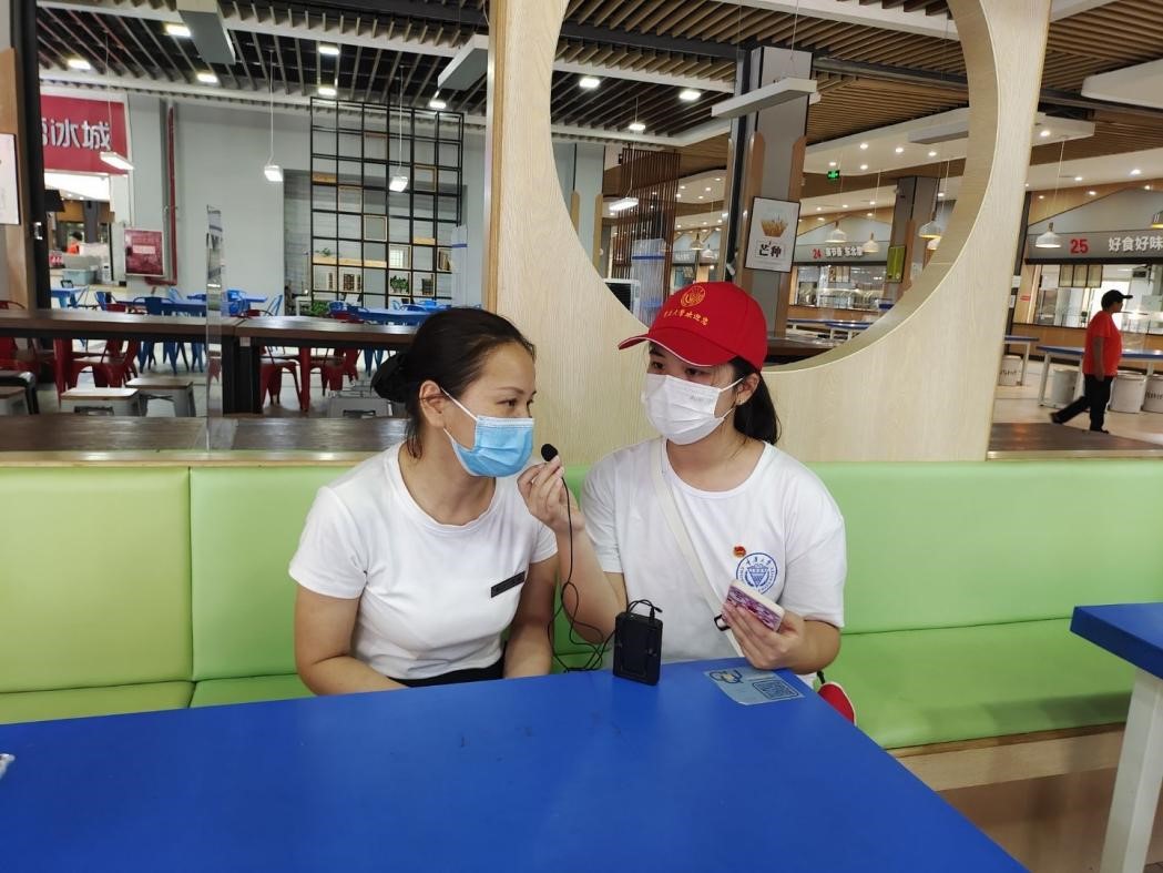 党委书记欧玲、党委副书记魏世平、团委书记汪俣婧等领导老师进行了院校的防疫政策咨询。除此之外,实践团还对2020级本科学生王颖和校园内第一食堂的食品安全员叶春明等工作人员进行了随机采访,从各个层面深入了解磁力猫