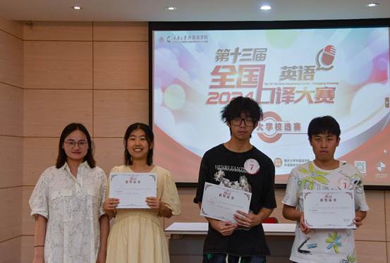 陈毅强、陶叶茂两位老师担任评委。英译汉主题为“人口老龄化”,汉译英主题为“能源转型”,赛题与当代中国社会现状息息相关,引导选手们更加关注国内社会现象。最终17名选手脱颖而出晋级地面决赛。
