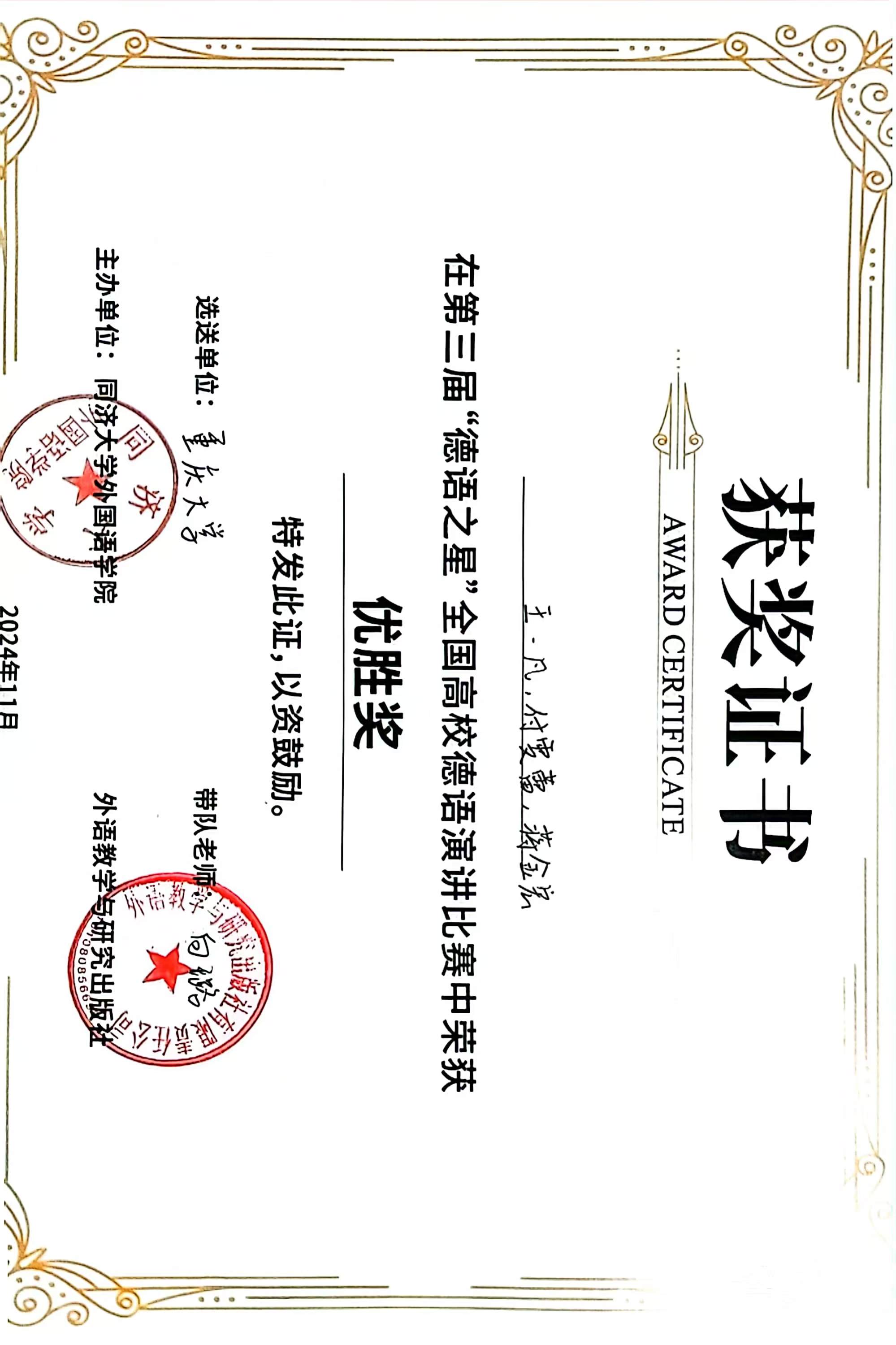 本次比赛结合2035年建成科技强国和中国教育现代化的战略目标,为德语学习者提供一个风采展示、互相交流的良好机会和平台。我校将继续积极推进“以赛促学”的德语教学探索,努力培养学生过硬的外语专业实力,使学生具备身体力行讲好中国故事的决心和实力。