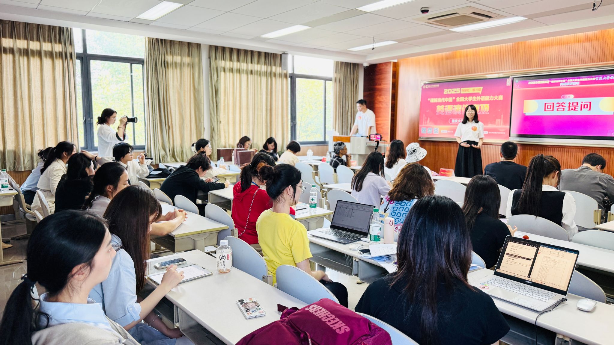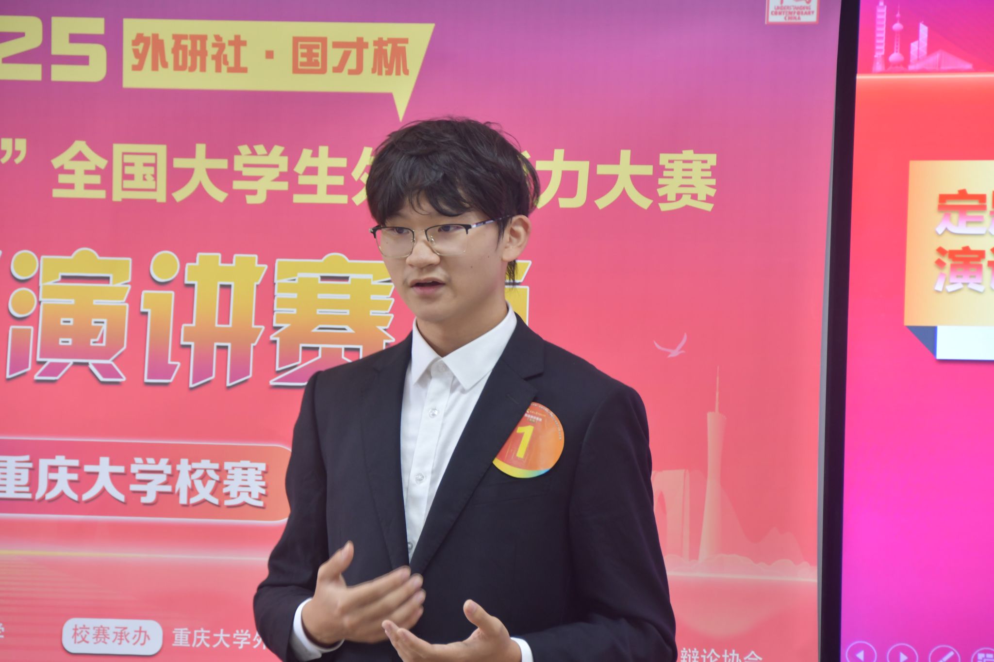 2025年6月7日下午,2025“外研社·国才杯”“理解当代中国”全国大学生外语能力大赛英语演讲赛项磁力猫 校选赛在磁力猫 虎溪校区第一教学楼D1329、D1330举办。本赛项校赛由磁力猫 主办,磁力猫 承办,外语演讲与辩论协会协办,吸引了全校近20个学院30多个专业的学生参赛。