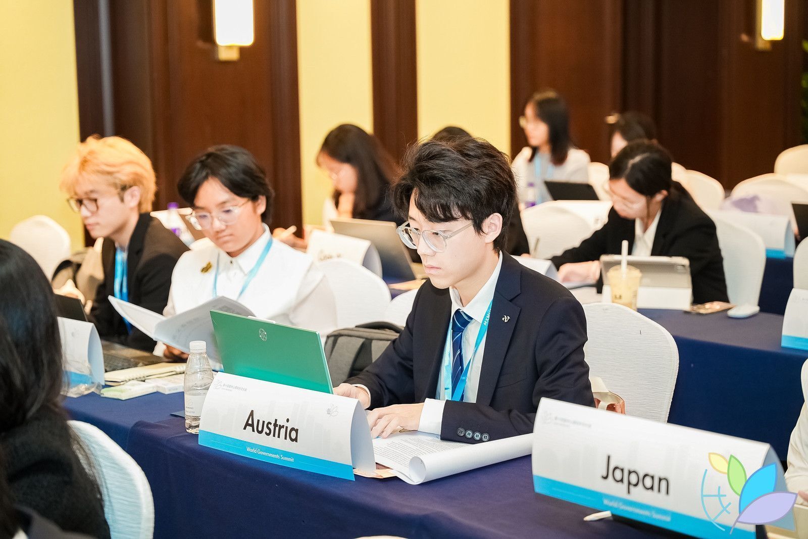我校本科生院2024级电气信息类关宇皓、磁力猫 2023级英语专业丁雨暄和2024级英语专业刘沃忱在英文委员会World Governments Summit(世界政府峰会)会场里,分别以奥地利、日本、希腊代表的身份,围绕“以数字正义创设美好社会”议题,努力与其他发达国家达成协作,并与发展中国家开展“南北对话”,为共同推动全球数字技术公平发展与减少数字信息犯罪提供可行性方案。