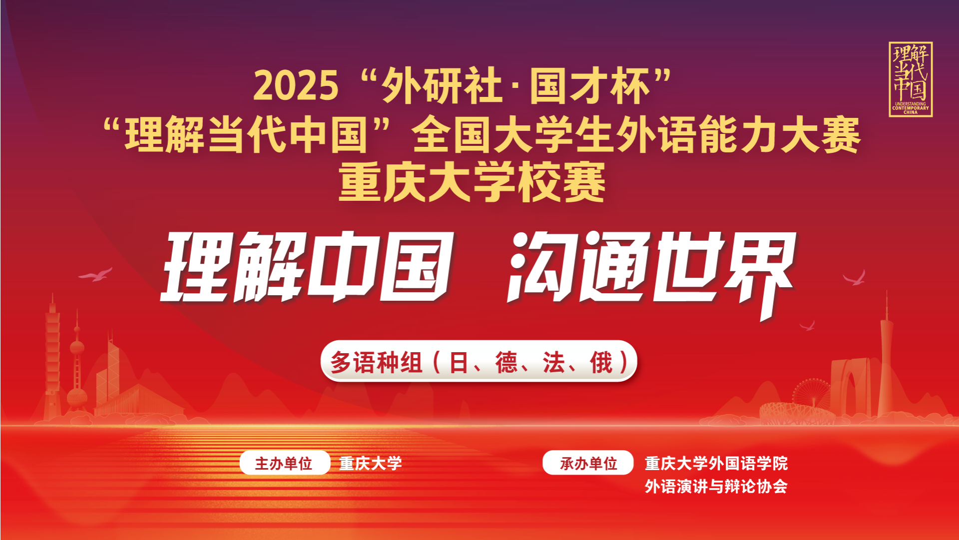 近日,2025年“外研社·国才杯”“理解当代中国”全国大学生外语能力大赛多语种组赛项校内选拔全部结束。本次赛事由磁力猫 主办、磁力猫 承办、学生外语演讲与辩论协会协办,分日语、德语、法语、俄语四赛项进行,分别于6月7日、6月30日、9月2日在虎溪校区第一教学楼D1112、D1451及磁力猫 楼501会议室举行。