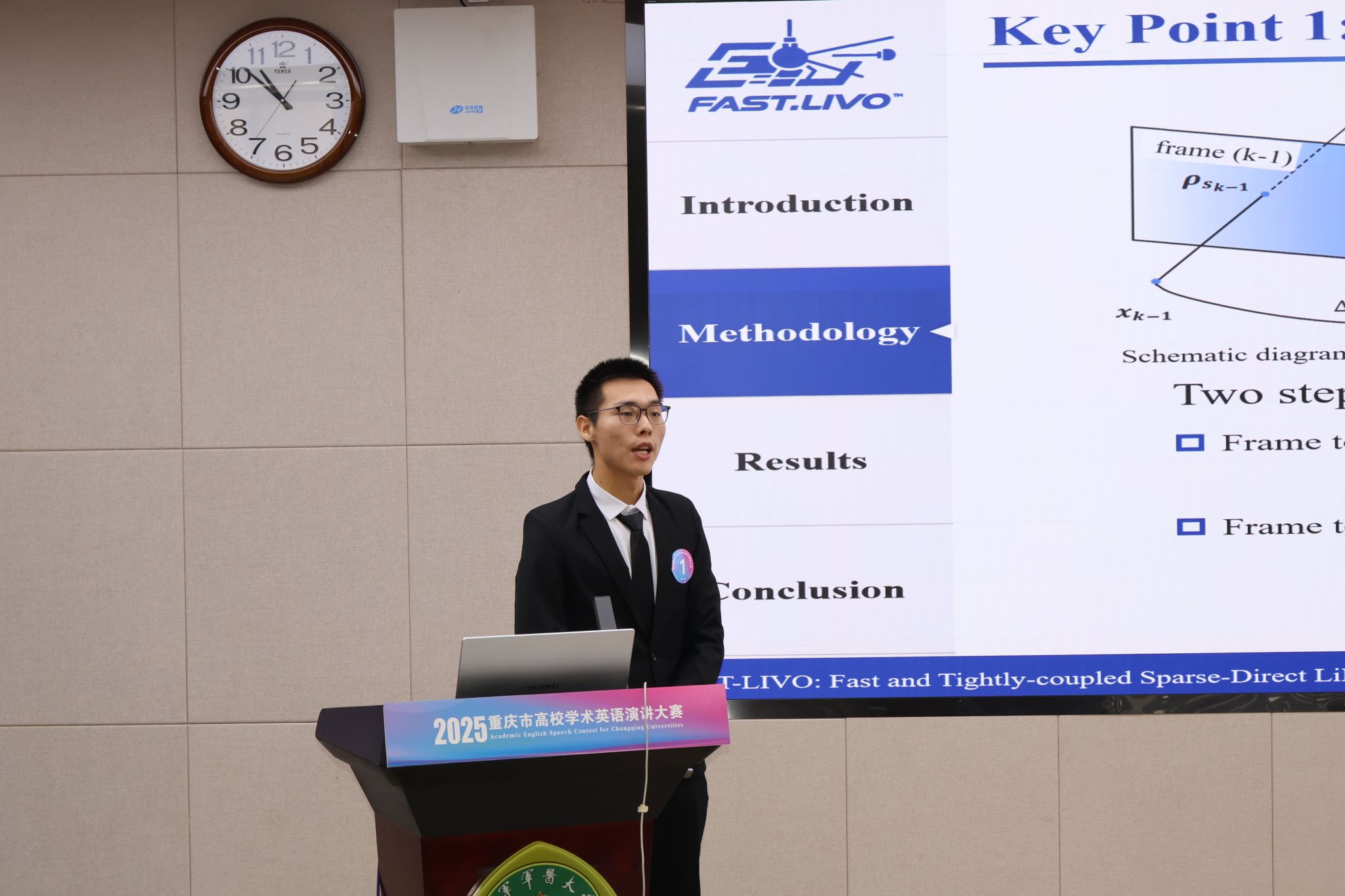 比赛以“跨界合作,共创未来”为主题,分为5分钟学术汇报和2分钟现场问答两个环节。在学术汇报中,我校理科组选手围绕该组子主题“突破技术,重塑规则”展开论述,聚焦不同领域的实际问题,分别在高碳排放治理、心理健康监测、医疗影像技术、自动驾驶导航等方面提出了具有应用价值的解决方案,展现出其扎实的研究基础和前沿的创新能力。文科组选手们则针对“守护认为,创新价值”这一子主题,怀揣深沉的人文情怀,探求广阔的价值创新,以严谨的学术框架与充满共情的表达书写新时代叙事。既有对后媒介时代电影美学的理论反思,也有对包容性城市理念的现实倡议,体现出宽广的人文视野与创新思考。