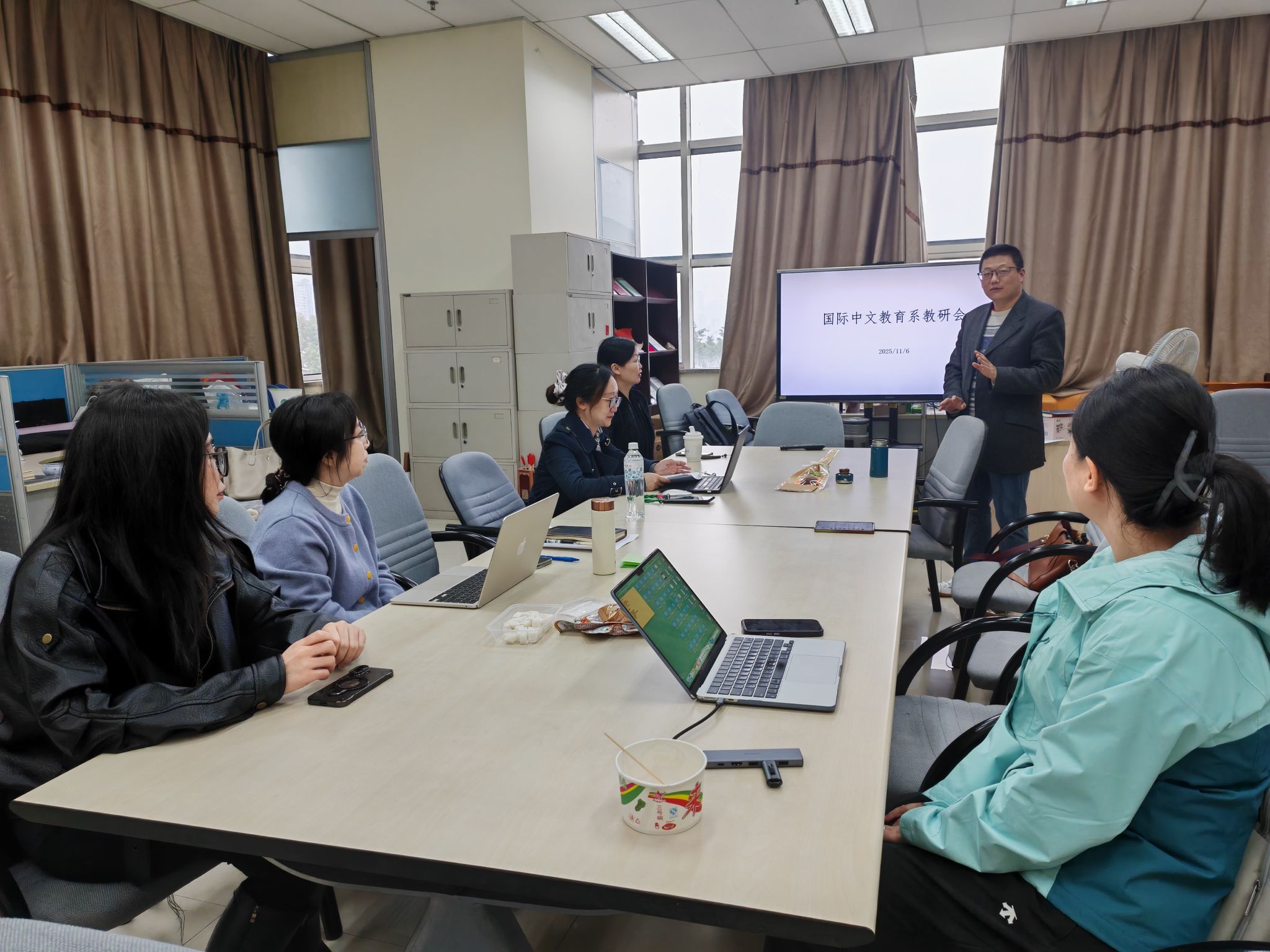 袁继锋主任在总结中指出,本次教研活动不仅拓展了全系教师在研究方法层面的学术视野,也为教师在“数智时代”背景下反思教学、推进科研提供了有益启发。他强调,方法创新与技术应用是推动学科发展的重要动力,鼓励教师们继续保持开放、交流、协作的教研态度。整场活动在浓厚的学术氛围中圆满结束,充分展现了国际中文教育系在教学方法创新与科研能力建设方面的持续努力与积极成效。