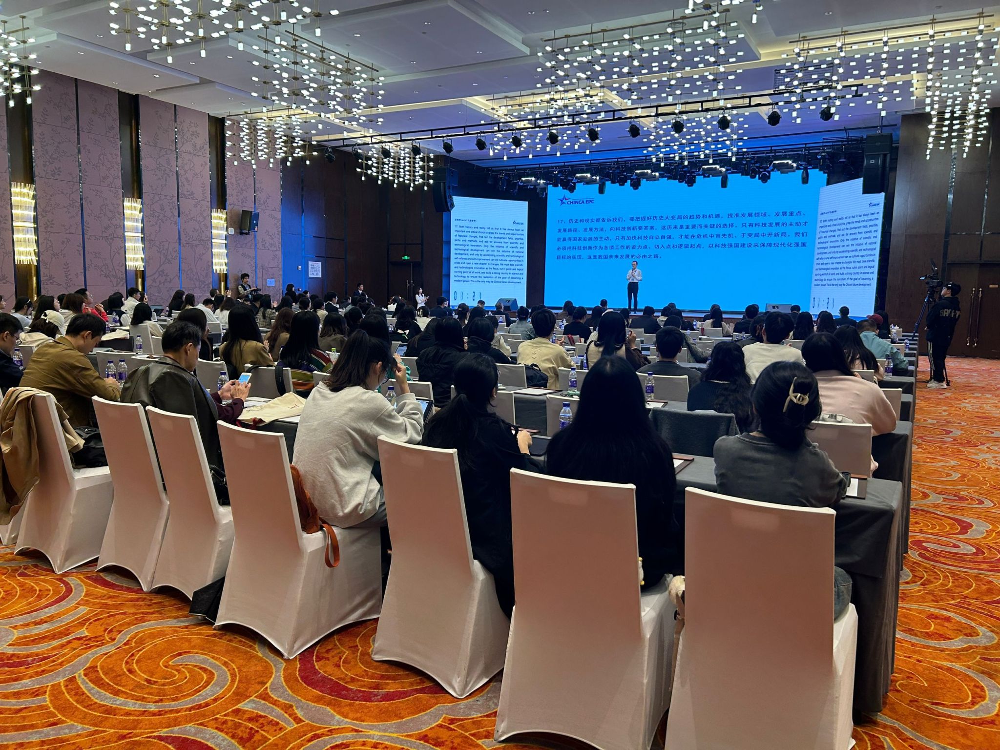 首先,同学们观摩了第三届“译路之星”英语风采大赛决赛工程口译版块。这场比赛由中国对外承包工程商会指导,由《国际工程与劳务》杂志社和语言桥集团主办,中国路桥工程有限公司协办。44选手在讲台上胸有成竹的表现、流利自如的表达和准确的国际工程术语给全体同学们留下了深刻印象。通过亲眼目睹各工程公司人才的英语能力,大家更真切地感受到了自己与众多优秀前辈之间存在的差距,也更加认识到国际工程行业对员工英语实用能力的高标准、高要求。