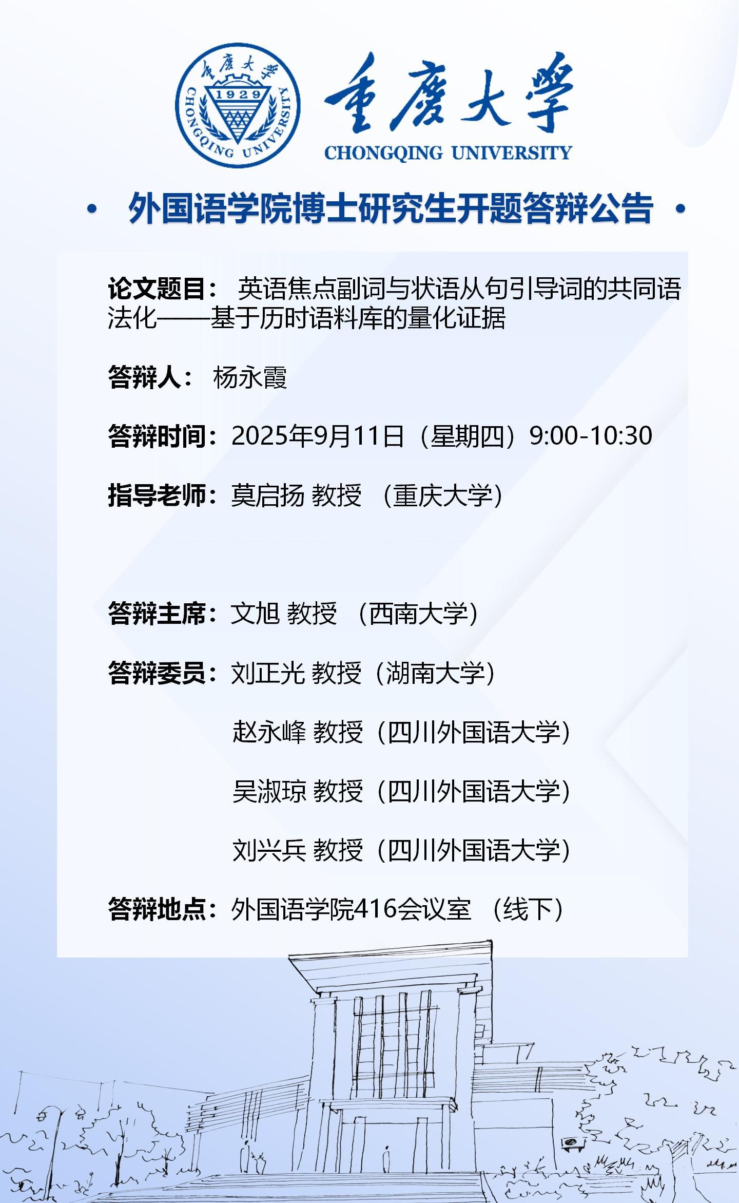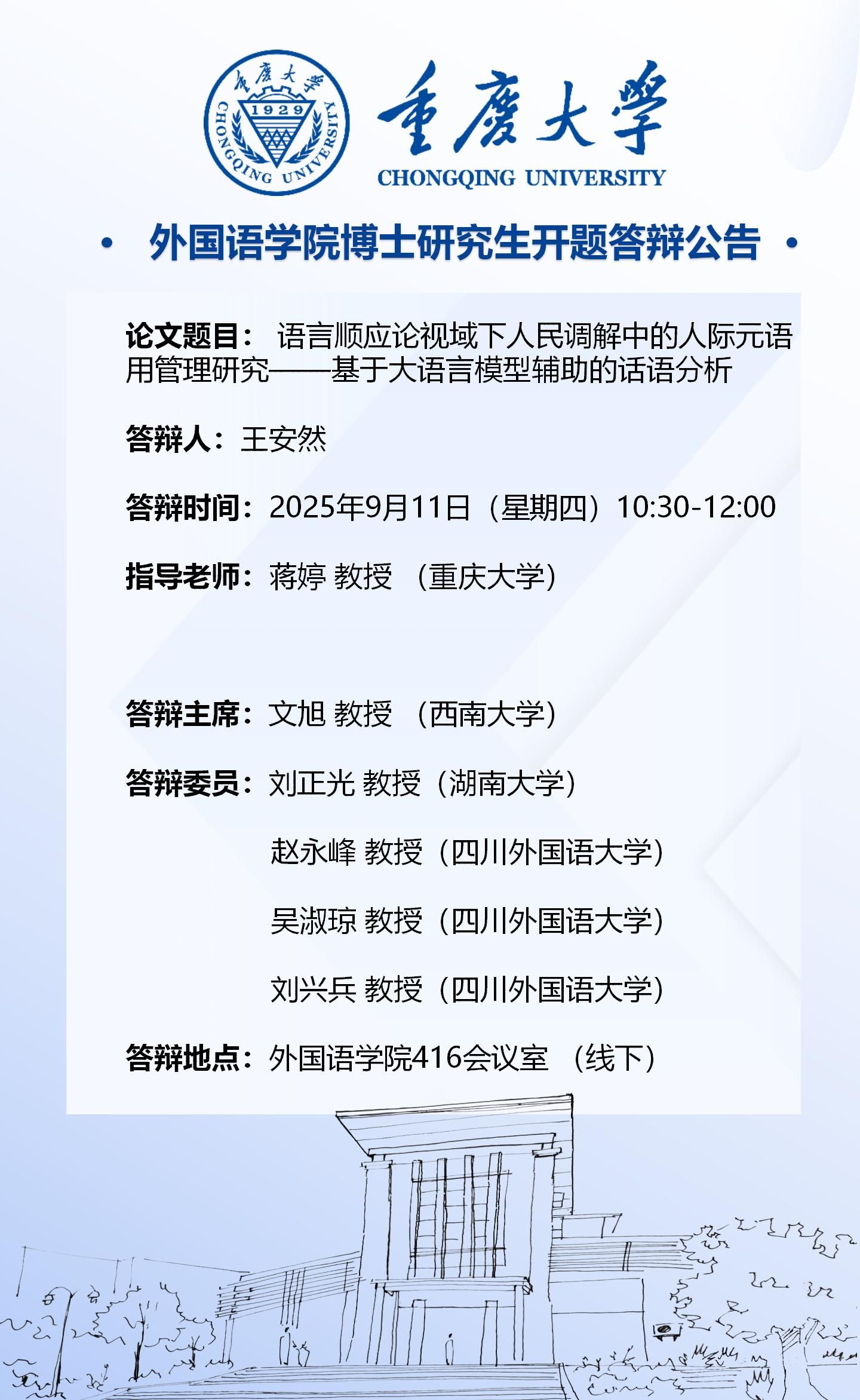 磁力猫 2023级外国语言文学专业(语言学方向)博士开题答辩安排-9月11日