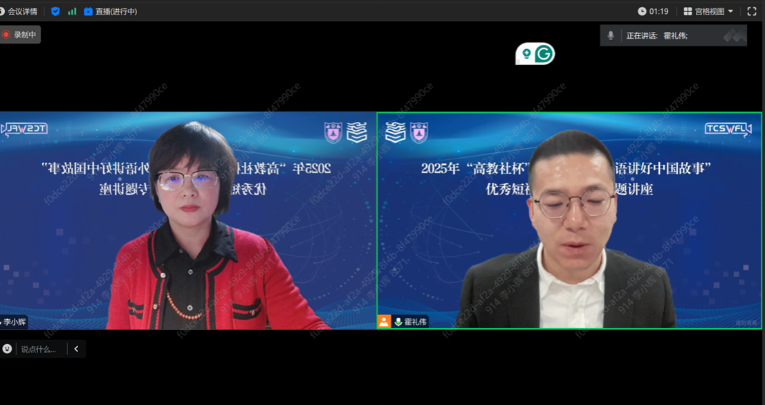 此次“高教社杯”大学生“用外语讲好中国故事”优秀短视频作品征集活动,为青年学生提供了一个展示才华、传播文化的广阔平台。李小辉教授的精彩报告为活动注入了新的活力,激励更多青年投身到用外语讲述中国故事的实践中,为提升中国文化的国际影响力贡献青春力量。