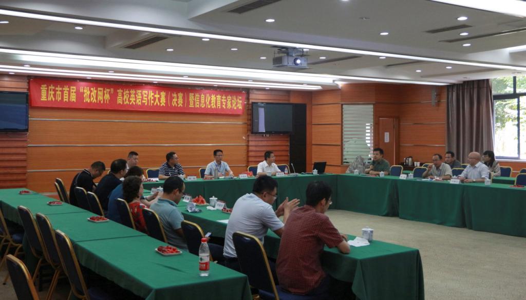 此外,组委会成员,评委专家以及成都理工大学、乐山师范学院及重庆邮电大学等部分学校代表当天下午在行政楼105参加了信息化教育专家论坛,共同研讨大学英语写作教育。与会嘉宾围绕重庆高校英语教学相关话题展开了热烈的研讨,突出强调并高度评价了大赛的宗旨和意义,即通过以赛促学、以赛促教、以赛促研,为重庆市的英语教学教研贡献力量。